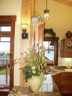 With an open living area, spaces flow freely into each other. Single-level living and universal accessibility become second-nature. The stone fireplace hearth, vaulted fir structure, and Brazilian cherry floors comfortably warm the living and dining areas. In the open kitchen, rustic cherry cabinetry, Corian and granite counter tops, and stainless steel appliances blend state-of-the-art convenience with old-word craftsmanship. The spacious deck extends the living area and invites an outdoor lifestyle.